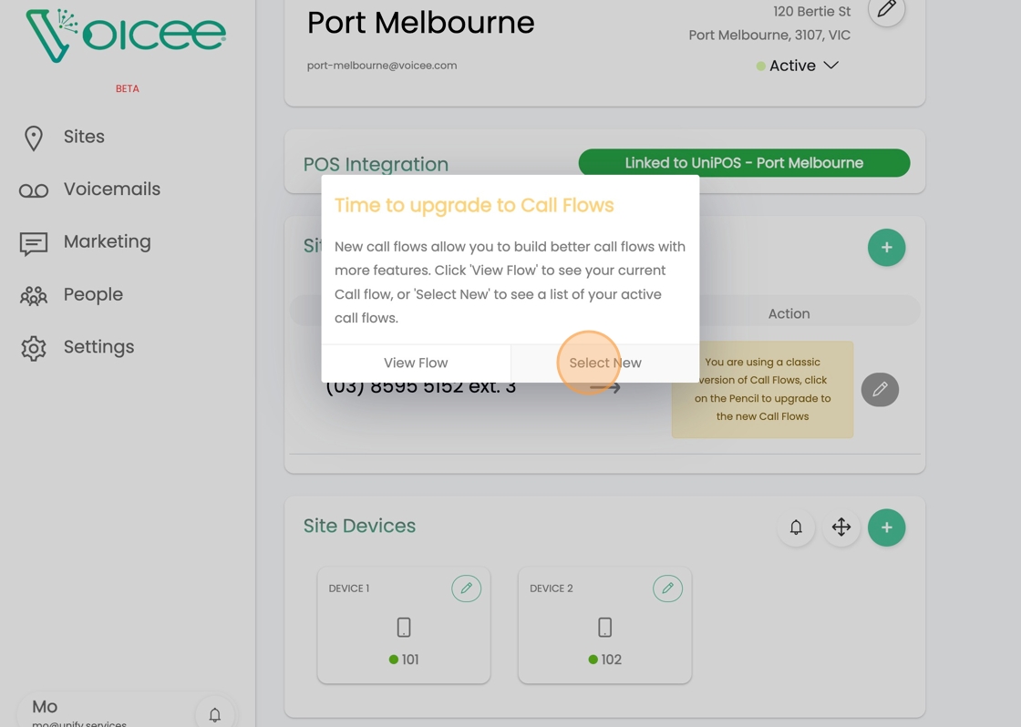 1. You'll know if you're on V1 of Call if you can see a notice next to one of your site Numbers.