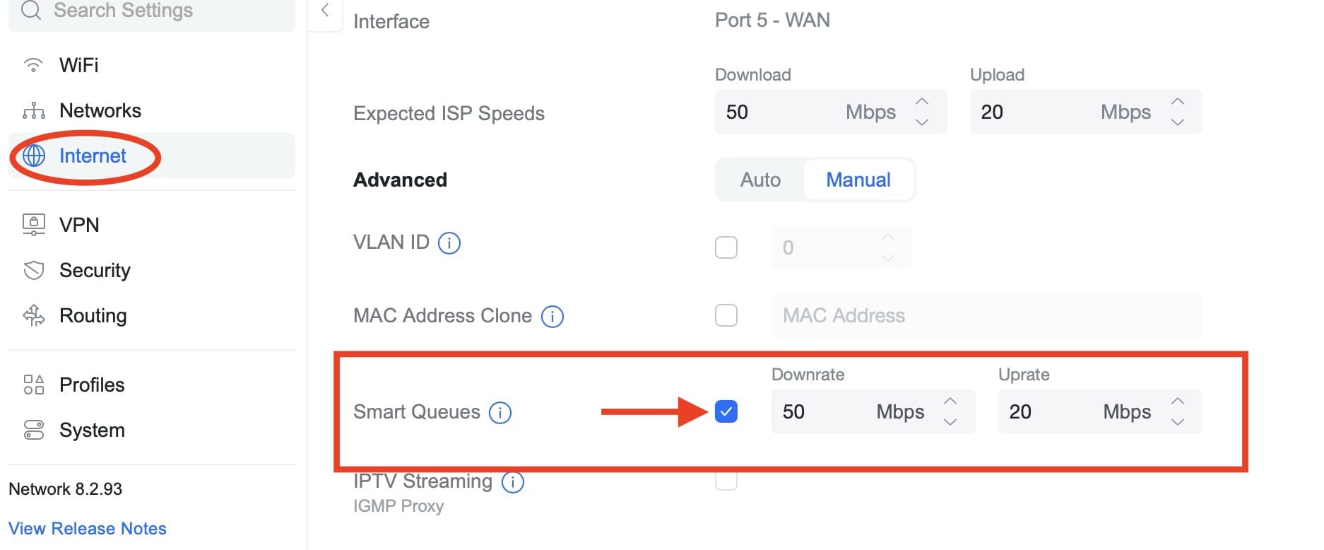 Enter your maximum upload and download speeds (it’s best to set this ~10% below your ISP’s advertised speeds for accuracy).